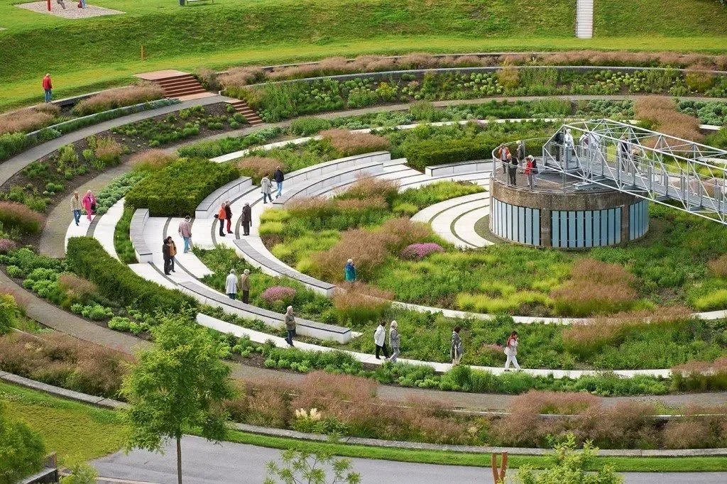 将保留水箱——现装有纯净的淡水,并有一座向公众开放的刮板桥穿过。而第二个则被改造成一个下沉式梯田花园,种植有2万多株灌木和草。